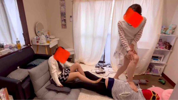 お姉ちゃんの部屋でお姉ちゃんの友達の梨央ちゃんとまいちゃんが待っている。お姉ちゃんが買い出しに行くと出て行って帰ってこないらしい。そこに運悪く俺が帰ってきてしまった!両腕を広げて棒にくくりつけられて上半身身動き取れない状況で「弟くんいつもあみちゃんにさー電気アンマされてるんでしょ?w」と2人がかりで電気アンマをかけ始めた!「いつも逝かされてるんでしょ?」「あみちゃんがやらないわけないじゃーん」と楽しそうに俺に電気アンマをかける。「私もあみちゃんにやられたしさぁ」「梨央もやられたから被○者の会なの」代わりに復讐してあげるwと理不尽な理由で電気アンマをかけてきやがる。まいちゃんが「私と梨央ちゃんどっちに逝かされたい?」と答えられないような事を聞いてきて答えられないでいると梨央ちゃんが「梨央が秒で逝かせるからまいちゃん見ててよ」と超本気モードの電気アンマで逝かされる…私もやりたいとまいちゃんが言うと梨央ちゃんに踏みつけられて押さえつけられまいちゃんの本気の電気アンマが炸裂し、○制射精の刑に突入する…。